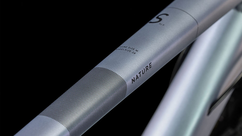 Je leichter ein Bike, desto besser sein Fahrverhalten. Deshalb besteht der Nature Rahmen auch aus doppelt konfizierten Aluminiumrohren, was sein Gewicht niedrig hält, ohne dass Belastbarkeit und Langlebigkeit verloren gehen. Er bietet zudem genügend Reifenfreiheit für bis zu 50 mm breite Reifen und damit mehr Fahrkomfort sowie ein konisches Steuerrohr für 1a-Lenkpräzision. Zusätzlich zu den im Smooth Welding Verfahren konstruierten Rohrverbindungen unterstreichen elegante Montagepunkte für Gepäckträger und Schutzbleche den anmutigen Look und erlauben die einfache Umrüstung und Anpassung an individuelle Bedürfnisse. Und dass das Chassis – wie alle CUBE Rahmen übrigens – die strengen hauseigenen Sicherheitstests mit Bravour bestanden hat, versteht sich von selbst. Damit fährt es sich gleich noch entspannter. Und länger!