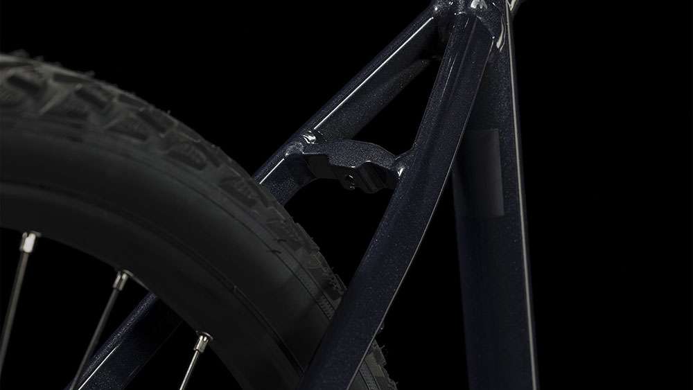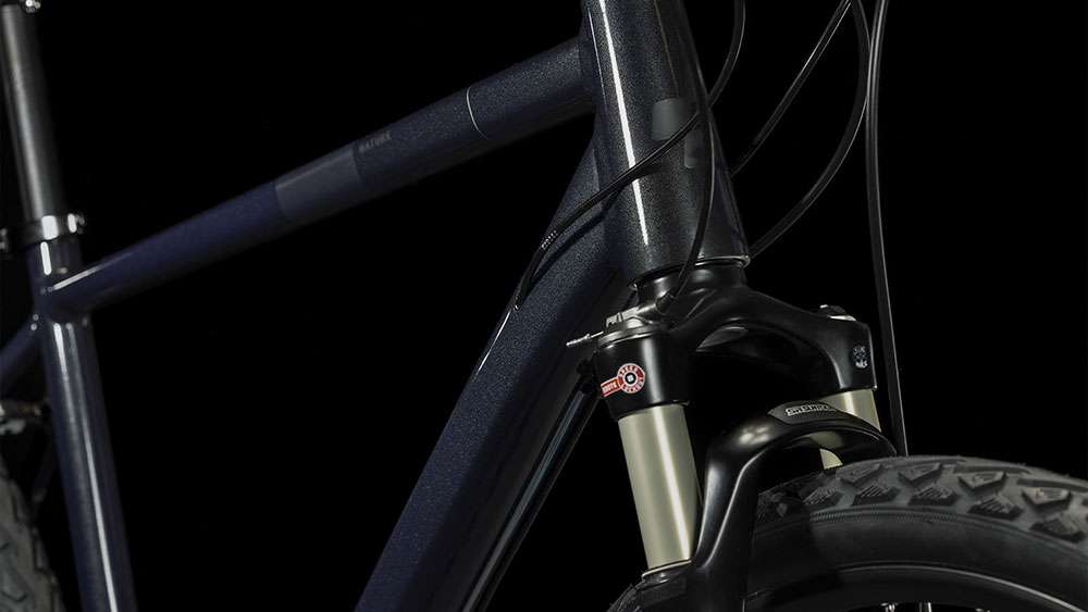 Je leichter ein Bike, desto besser sein Fahrverhalten. Deshalb besteht der Nature Rahmen auch aus doppelt konfizierten Aluminiumrohren, was sein Gewicht niedrig hält, ohne dass Belastbarkeit und Langlebigkeit verloren gehen. Er bietet zudem genügend Reifenfreiheit für bis zu 50 mm breite Reifen und damit mehr Fahrkomfort sowie ein konisches Steuerrohr für 1a-Lenkpräzision. Zusätzlich zu den im Smooth Welding Verfahren konstruierten Rohrverbindungen unterstreichen elegante Montagepunkte für Gepäckträger und Schutzbleche den anmutigen Look und erlauben die einfache Umrüstung und Anpassung an individuelle Bedürfnisse. Und dass das Chassis – wie alle CUBE Rahmen übrigens – die strengen hauseigenen Sicherheitstests mit Bravour bestanden hat, versteht sich von selbst. Damit fährt es sich gleich noch entspannter. Und länger!