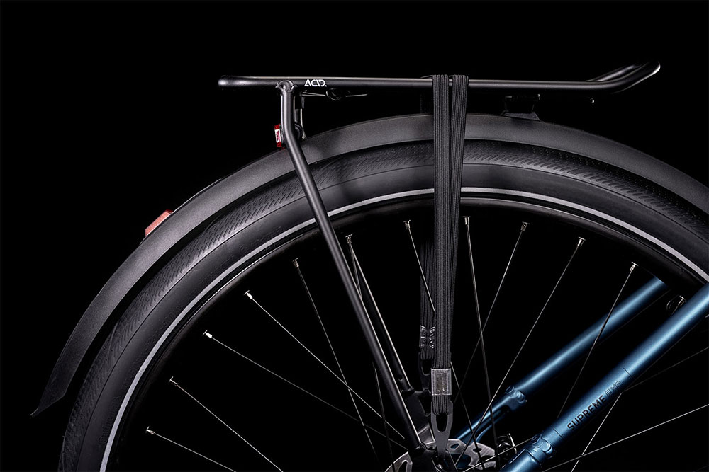 Das Ergebnis: volle Kontrolle zu jeder Zeit. Der Bosch Motor arbeitet reibungslos mit dem wartungsfreien Gates Zahnriemen und der Shimano 8-Gang Schaltung zusammen, sodass man kraftsparend pedaliert und immer frisch und erholt am Ziel ankommt. Seinen dauerhaft hohen Fahrkomfort verdankt das Bike einer gefederten Sattelstütze, einer Federgabel und dem verstellbaren Vorbau. Ein komplettes Zubehörset mit Beleuchtung, Schutzblechen, semi-integriertem Gepäckträger und Seitenständer ist auch mit dabei. Schließlich soll es Supreme Fahrern an absolut gar nichts fehlen.