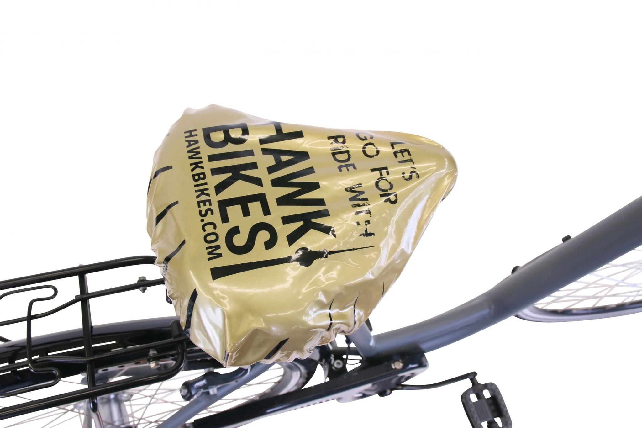 Das Bike für die Dame mit Klasse. Das HAWK City Wave Deluxe bietet ein Maximum an Komfort und Sicherheit und ist nur mit besten Komponenten für eine sorgenfreie Fahrt ausgestattet. So stellen der leichte Aluminiumrahmen sowie eine perfekt auf den Rahmen abgestimmte Federgabel die Basis dieses tollen Stadtfahrrades dar. Und während eine robuste Shimano 7-Gang-Nabenschaltung bei kleinen und großen Anstiegen zuverlässig zur Seite steht, bieten der Gepäckträger und der Shimano Nabendynamo ein Mehr an Komfort und Sicherheit. Als besonderes Highlight kommen Continental City Plus Reifen mit Pannenschutzeinlage zum Einsatz. Und somit steht einer dauerhaft sorgenfreien Fahrt nichts im Wege.