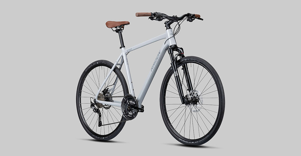 Unser Radon SCART LIGHT 9.0 geht unverändert in die neue Saison 2022 und das mit gutem Grund: allein optisch ist es mit seinem schicken, hellgrau glänzenden Rahmen und den stylischen, braunen Anbauteilen Sattel und Griffe ein klassischer Hingucker.