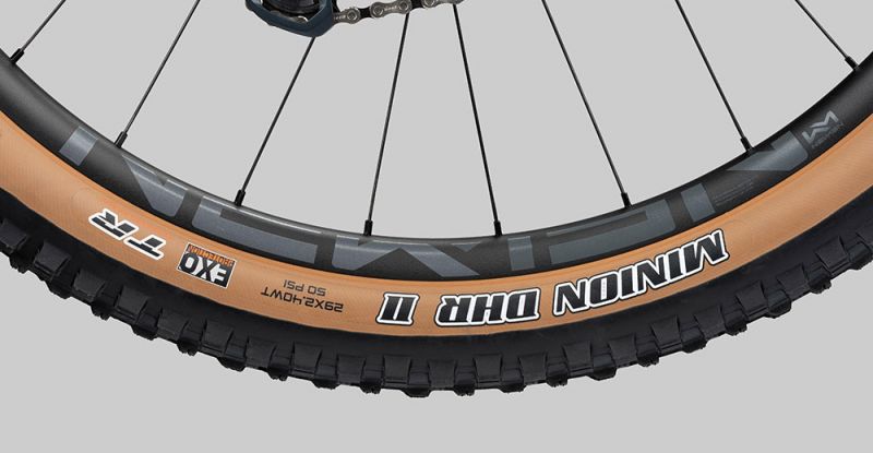 | Reifen hinten: | Maxxis Minion DHR II Skinwall, Dual, EXO, TR, 29″ x 2.4″ WT |