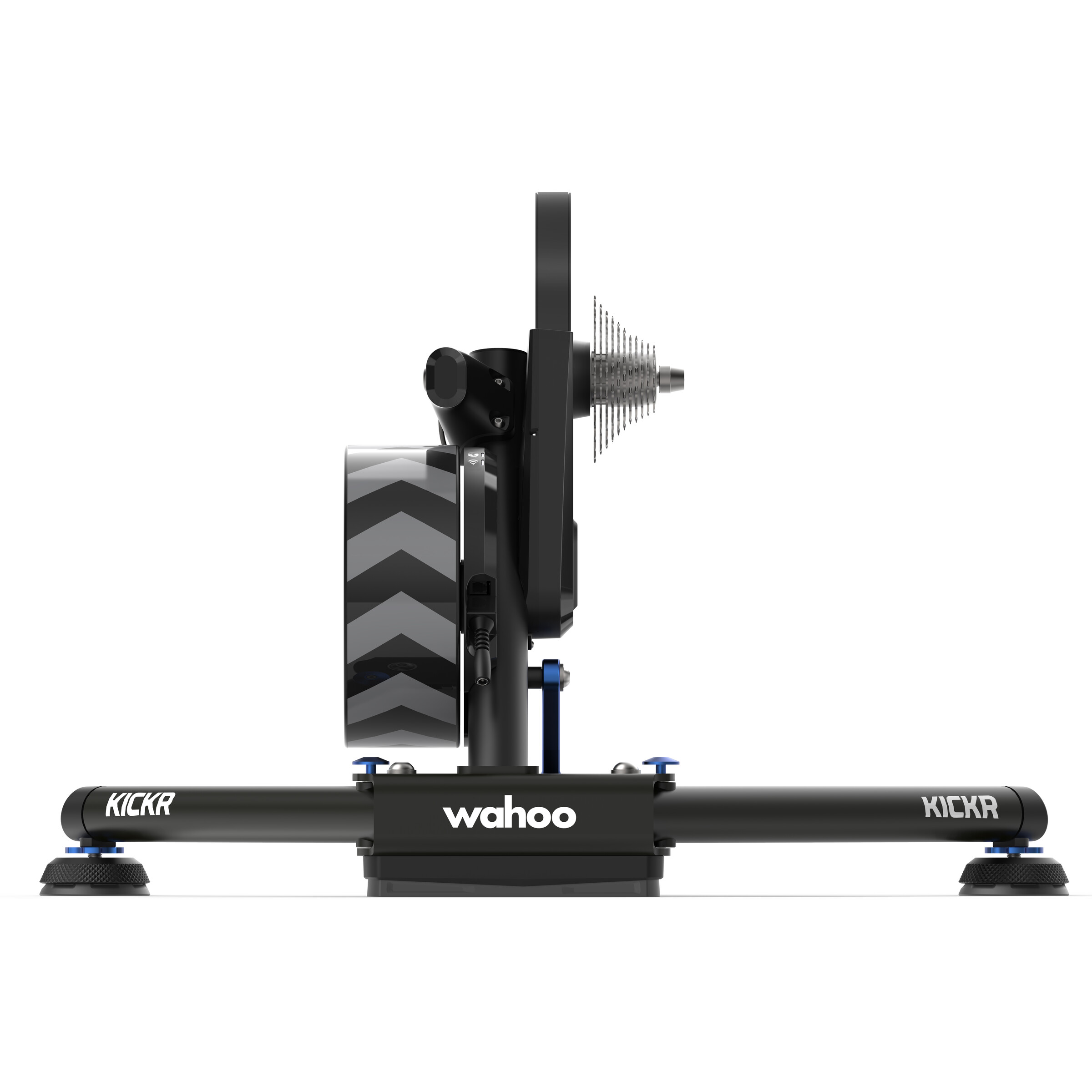 Lieferumfang: KICKR, Wechselspannungsadapter, KICKR AXIS Feet – Hard, Medium, Easy, Schnellspanner, Außenseiten-Adapter für 130 mm- und 135 mm-Schnellöffnung, Umschaltbarer Nabenabstand für 130 mm- und 135 mm-Schnellöffnung, Antriebsseiten-Adapter für 12 x 142- und 12
