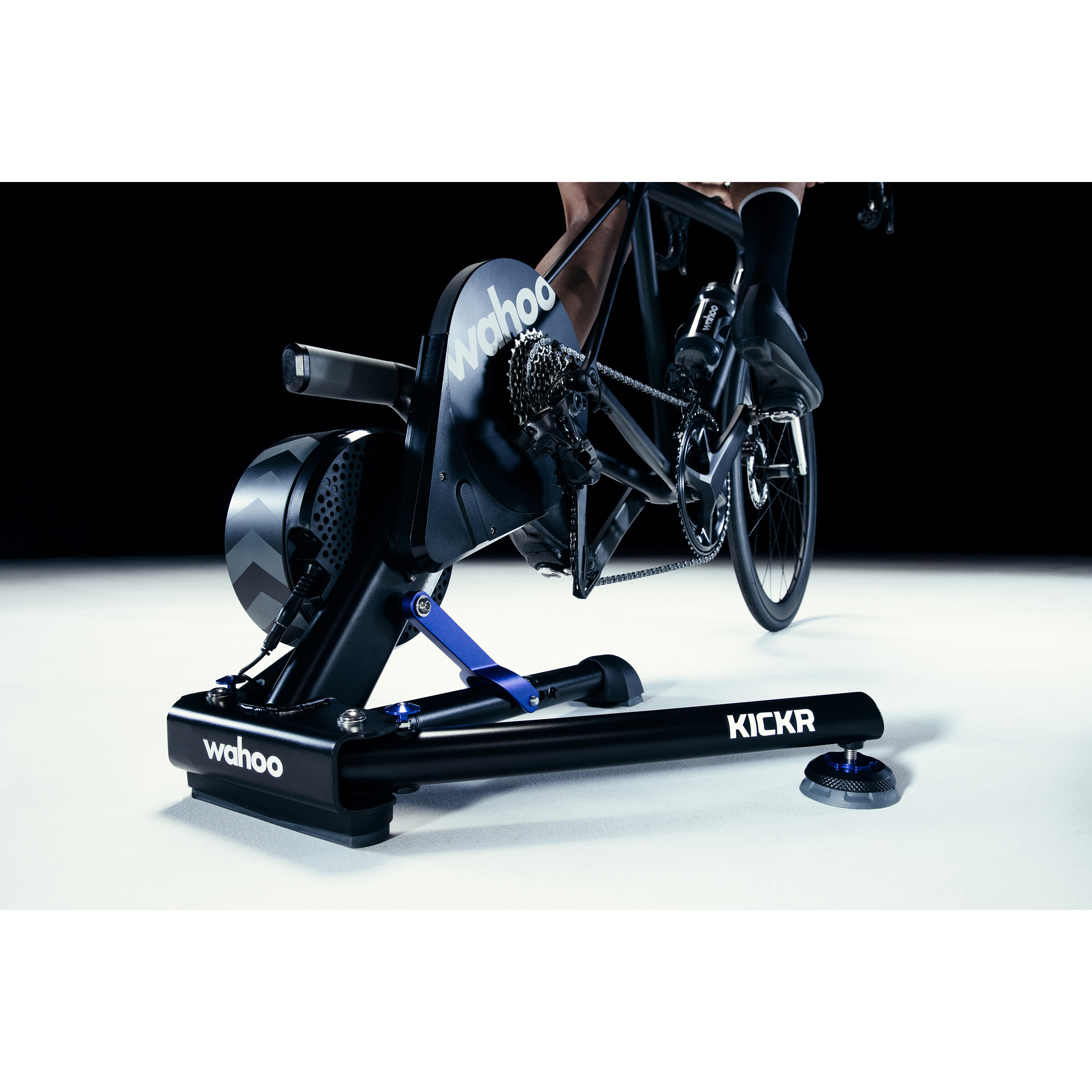 Das professionelle KICKR-Schwungrad mit hohem Trägheitsmoment (16 lb) und die AXIS-Füße sorgen für ein ultrarealistisches Fahrgefühl.
